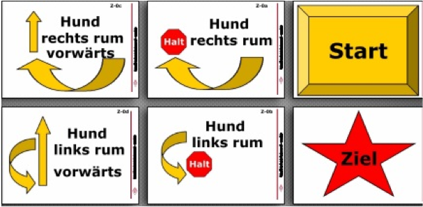 So funktionierts:Der Hundeführer durchläuft mit seinem Hund einen vorgegebenen Parcours, der möglichst schnell und präzise abzuarbeiten ist. An jeder Station finden das Team ein Schild, auf dem angegeben ist, was dort zu tun ist und in welche Richtung es anschließend weitergeht. Die Aufgaben im Parcours bestehen aus klassischen Gehorsams-Übungen wie Sitz-, Platz-, Steh-Kommandos, aber auch Kombinationen aus diesen Elementen. Es sind Richtungsänderungen um 90°, 180° und 270° nach rechts und links zu absoeinen Slalom um lvieren sowie 360° Kreise. Andere Schilder fordern auf, Pylonen zu machen oder den Hund über eine Hürde voraus zu senden oder abzurufen. Fester Bestandteil eines Parcours sind außerdem die so genannten Bleib- oder Abrufübungen. Ein besonderes Element ist die "Futterverweigerung". Das heißt, dass das Mensch-Hund-Team an bewusst platzierten Futterschüsseln vorbeigehen muss, ohne dass der Hund dem Duft der Köstlichkeiten unterliegt. Wer kann mitmachen?Das Schöne am Rally Obedience: Es gibt kaum ein Hund- und Mensch-Team, für das sich diese Sportart nicht eignet! Große und kleine, alte und junge, dicke und dünne, unbegrenzt mobile und mobilitätsbegrenzte Menschen und Hunde können und sollen teilnehmen. Auch die Anforderungen an den Trainingsstand halten sich in Grenzen: Schon mit ein bisschen Übung ist ein Parcours erfolgreich zu bewältigen. Es kann im heimischen Garten genau so wie auf der Hundewiese oder im Urlaub geübt werden. Sportliches / WettkampfDie Hundeführer haben, wie beim Agility, die Möglichkeit, sich den Parcours ohne Hund anzuschauen, um eine Strategie zu entwickeln, den Hund möglichst schnell und ohne Fehler durch den Parcours zu führen. Sobald das Team startet, erhält es keine weiteren Anweisungen vom Richter, sondern durchläuft den Parcours in Eigenregie. Jedes Team startet mit einer festgelegten Punktzahl und erhält bei Fehlern Punktabzüge. Zusätzlich wird die Durchlaufzeit gemessen. Punkte und Zeit entscheiden über die Platzierung des Teams.